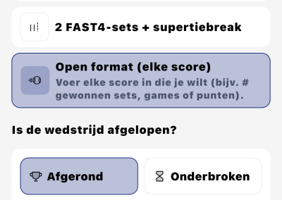 - Selecteer “Afgerond” bij de vraag of de wedstrijd afgelopen is.