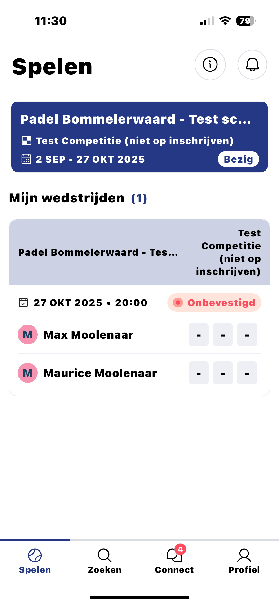 Als je de KNLTB Match App opent, zie je direct in welke competitie(s) je mee speelt en welke wedstrijden er voor je staan gepland.