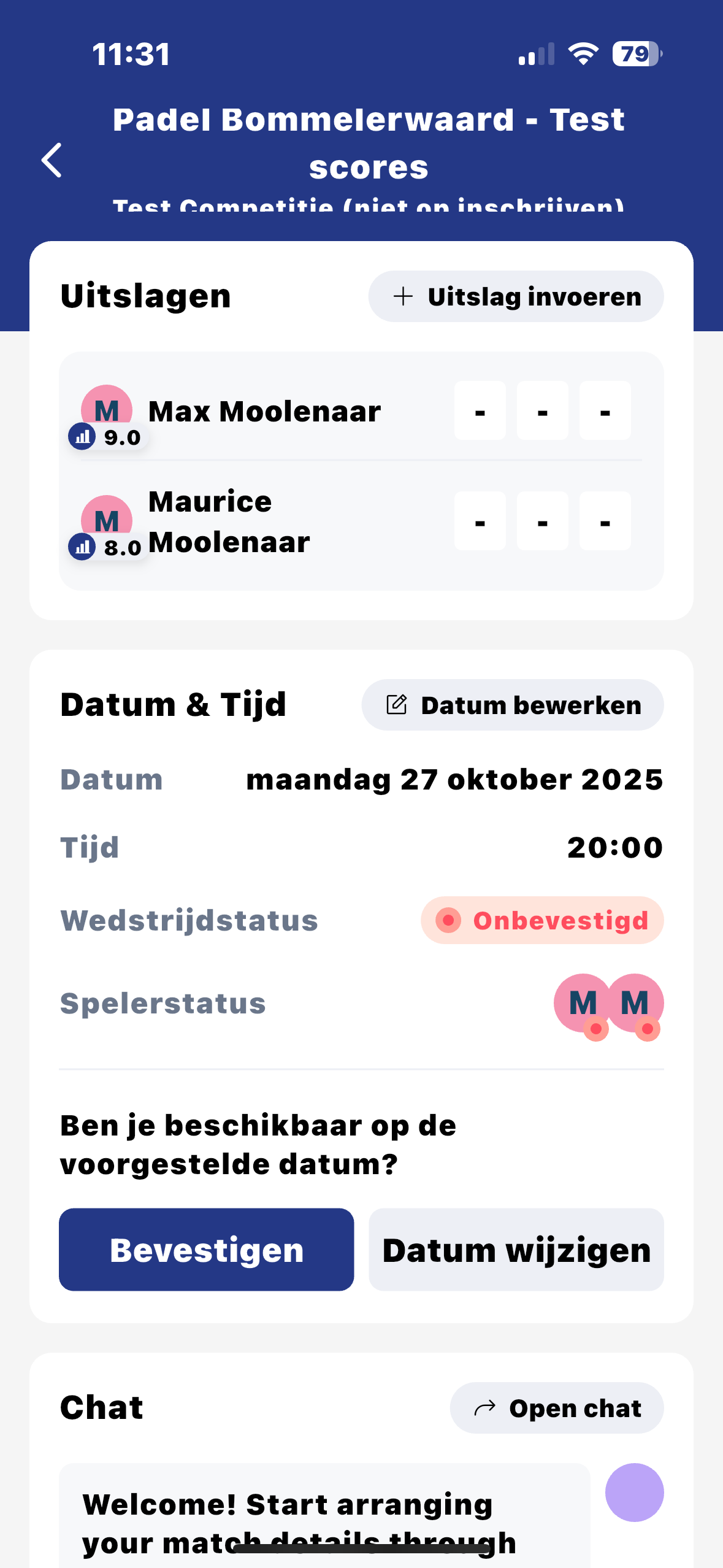 - Je kunt in je chat onderling zaken over de wedstrijd afstemmen.