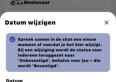 - Nadat de datum bepaald is, wordt de status bevestigd.