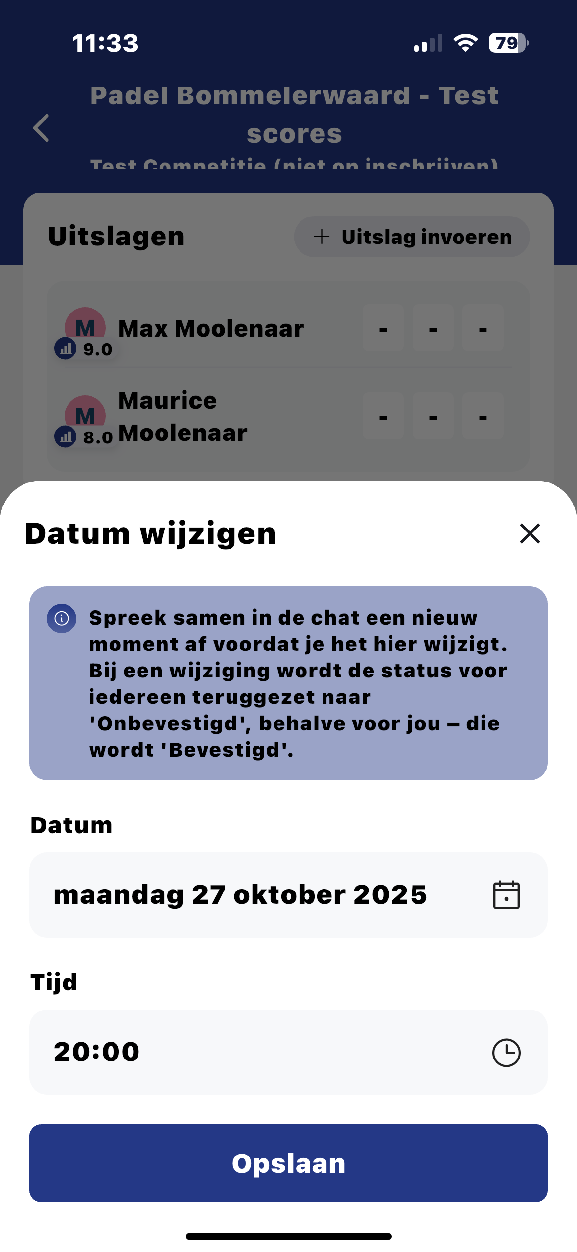 Nadat je de wedstrijd gespeeld hebt, voer je de uitslag in.